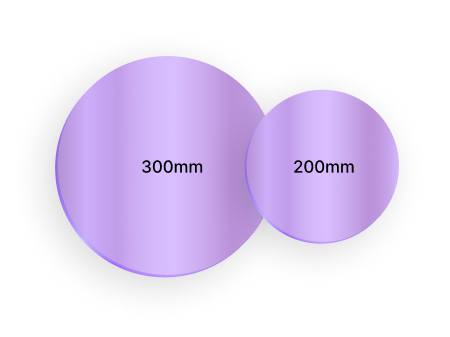 기생 용량 감소와 누설 전류 억제를 통해 고속 동작 및 저전력 특성을 구현할 수 있으며, 200mm 및 300mm 직경으로 제공됩니다.